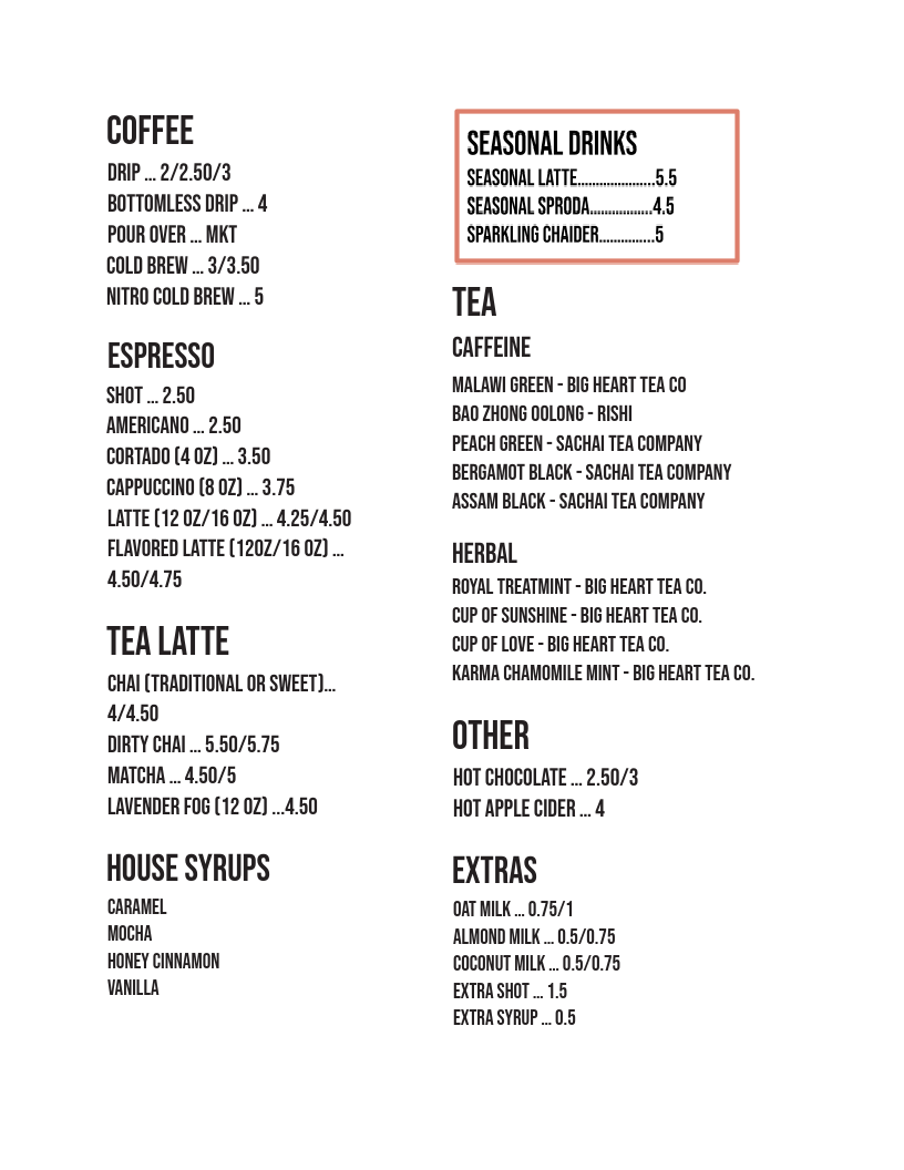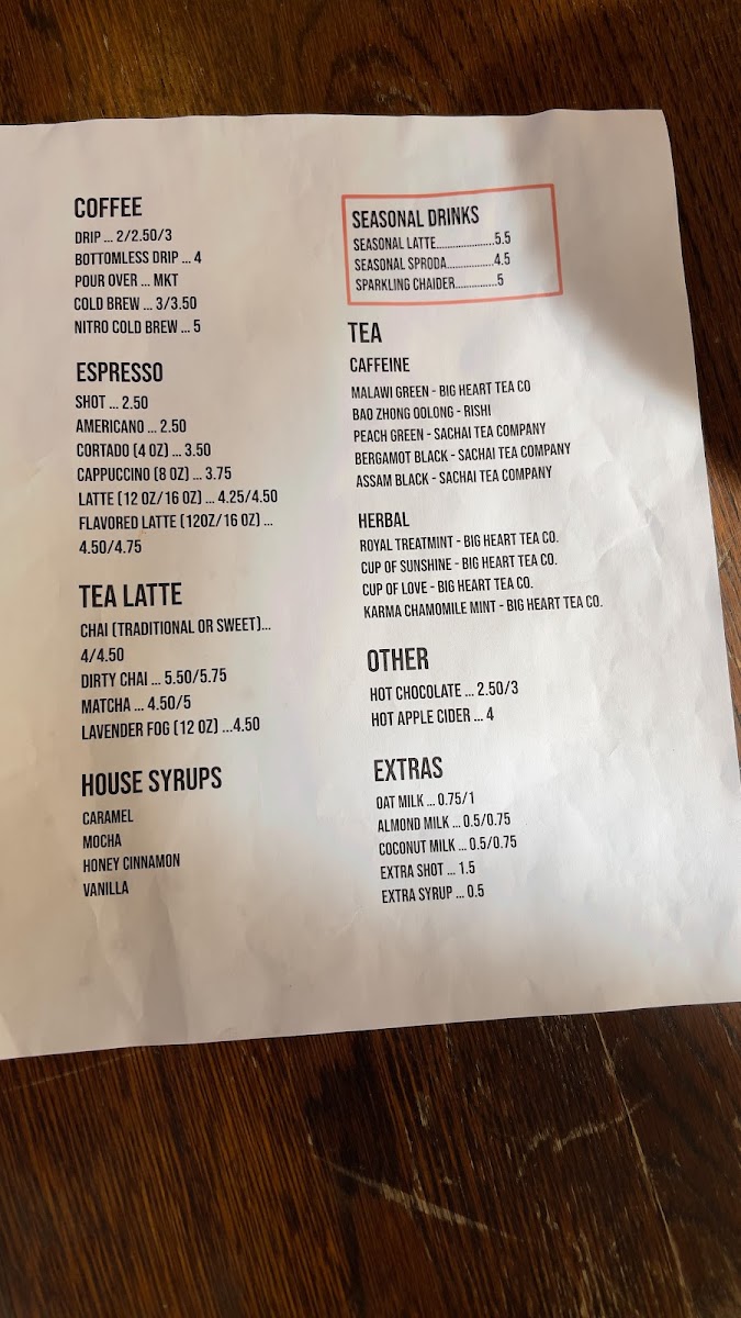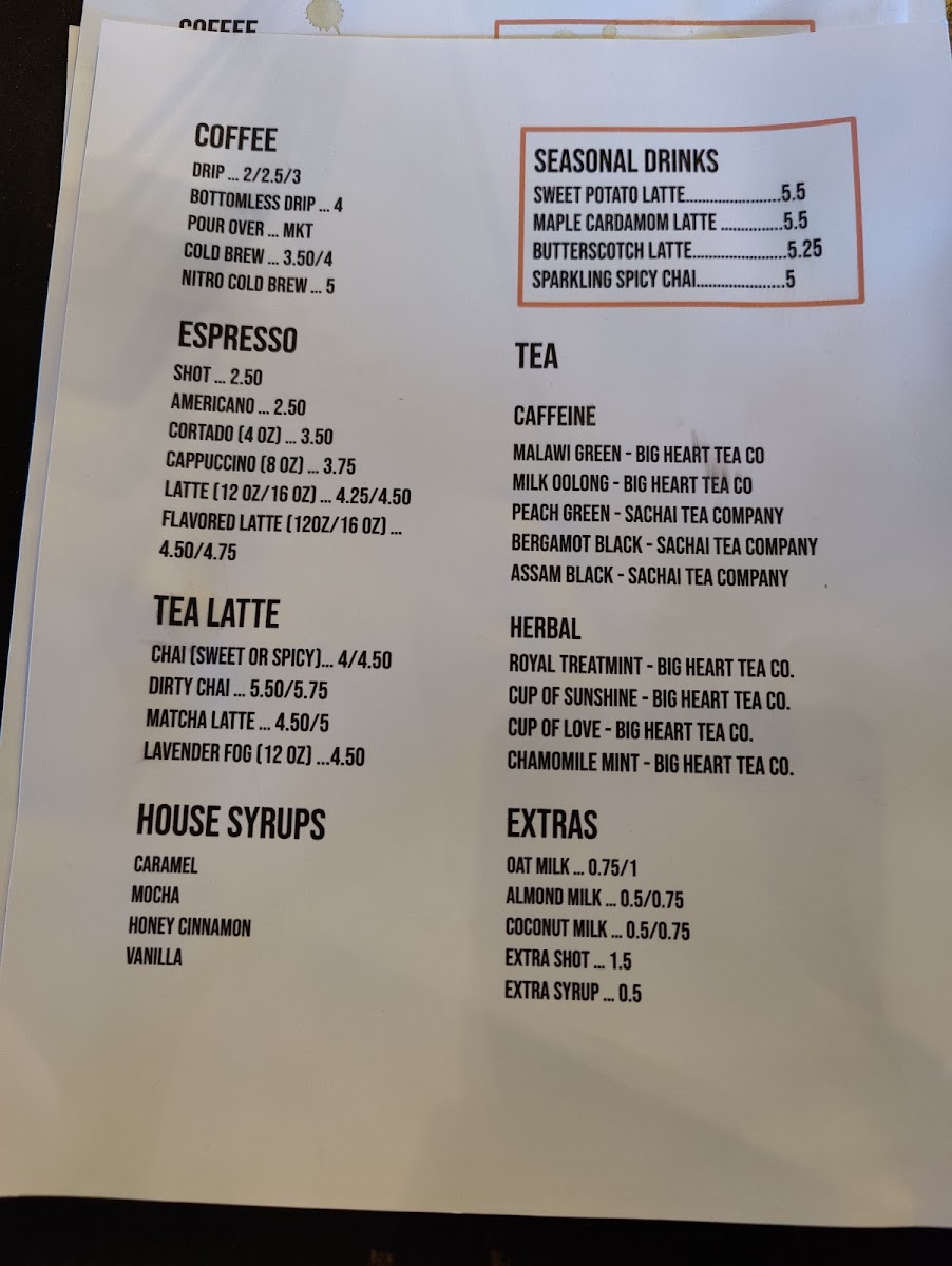 The menu features a delightful range of caffeinated options like the Heritage Green and Assam Black, each priced at just $3.50. If you prefer non-caffeinated drinks, their Cup of Sunshine is sure to brighten your day.